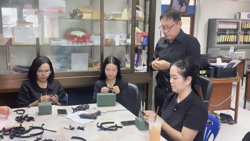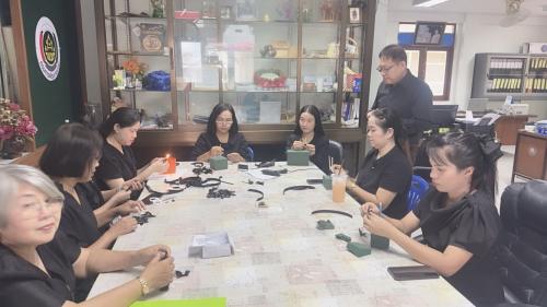 นายไพโรจน์ เดชาถิรนันท์ พัฒนาการอำเภอเมืองเพชรบุรี พร้อมด้วยเจ้าหน้าที่พัฒนาชุมชนอำเภอเมืองเพชรบุรี ร่วมกันประดิษฐ์ริบบิ้นสีดำ สำหรับแจกจ่ายประชาชนเพื่อถวายความอาลัยแด่สมเด็จพระนางเจ้าสิริกิติ์ พระบรมราชินีนาถ พระบรมราชชนนีพันปีหลวง ณ ห้องสำนักงานพัฒนาชุมชนอำเภอเมืองเพชรบุรี ที่ว่าการอำเภอเมืองเพชรบุรี ชั้น 2