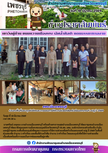 สำนักงานพัฒนาชุมชนอำเภอเมืองเพชรบุรี ลงพื้นที่มอบถุงยังชีพและวางแผนการให้ความช่วยเหลือครัวเรือนตกเกณฑ์ จปฐ.ปี 2569